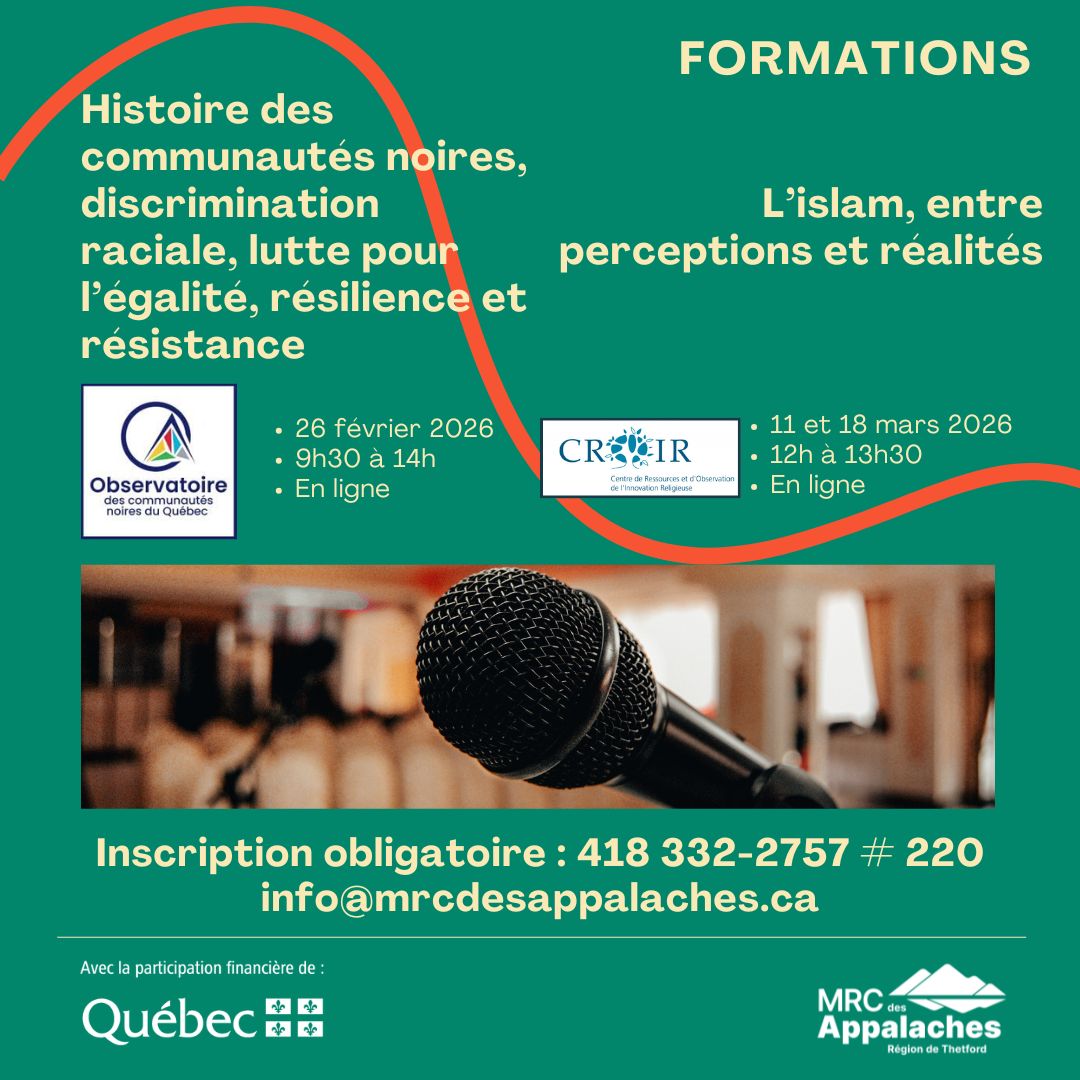 EN LIGNE - Jeudi 26 février, de 9h30 à 14h, avec une pause de 30 minutes pour le dîner. Inscrivez-vous à info@mrcdesappalaches.ca pour recevoir le lien.