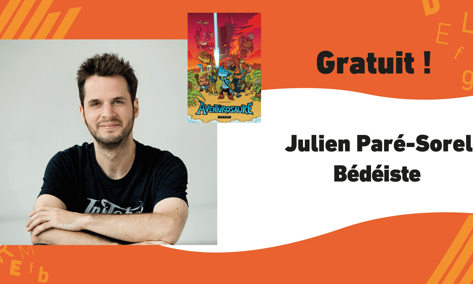 Julien Paré-Sorel, auteur de la série BD fantastico-jurassique Aventurosaure, dessinera les personnages principaux de la saga et les présentera. Le processus de création de la BD sera également dévoilé.