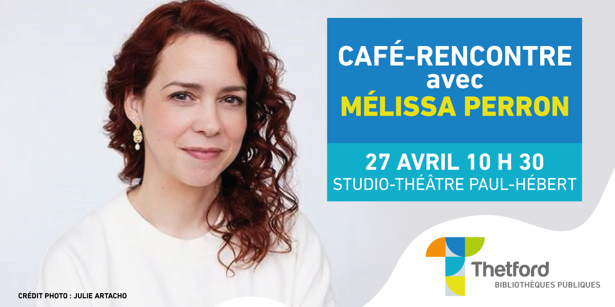 Un café-rencontre gratuit avec l’autrice Mélissa Perron aura lieu le dimanche 27 avril prochain à 10 h 30 au Studio-Théâtre Paul-Hébert.