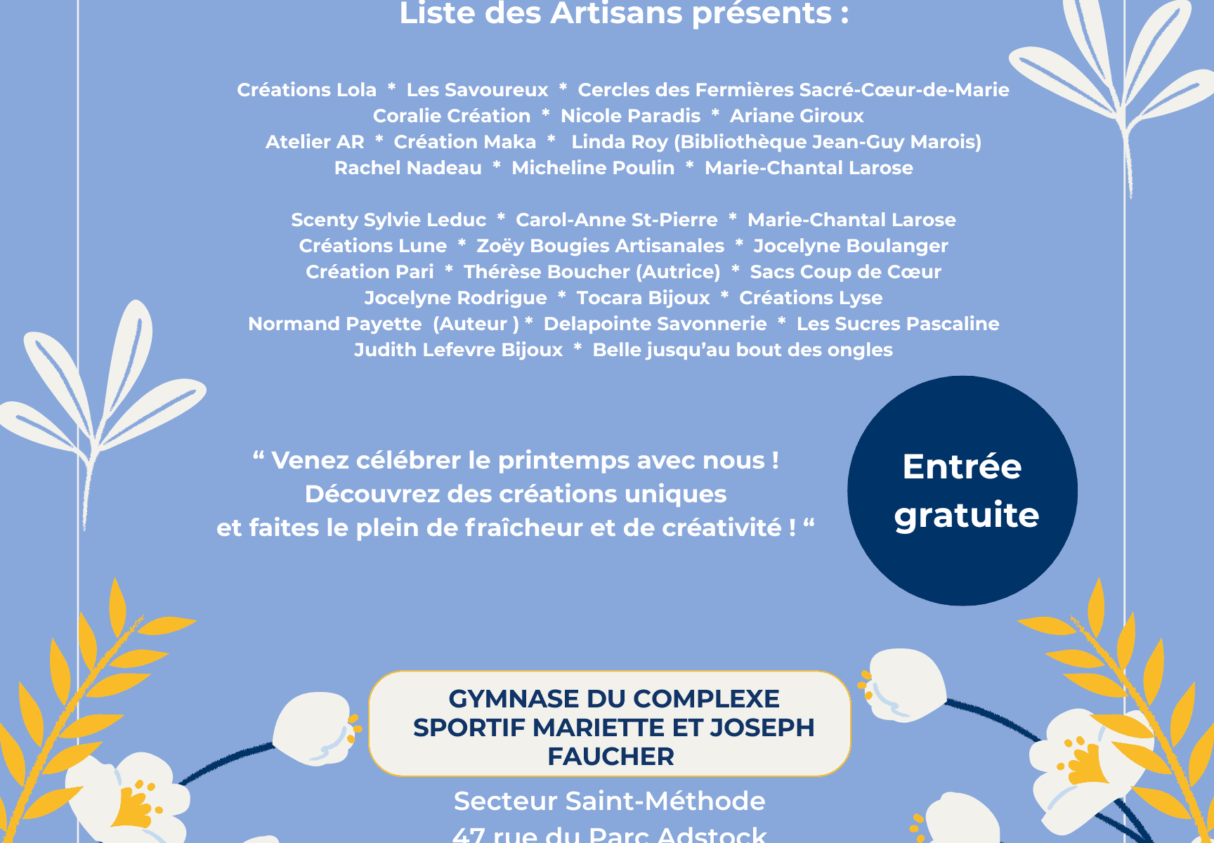 23 novembre 2024 de 9h 30 à 16 h au Centre culturel, 435, rue Principale.