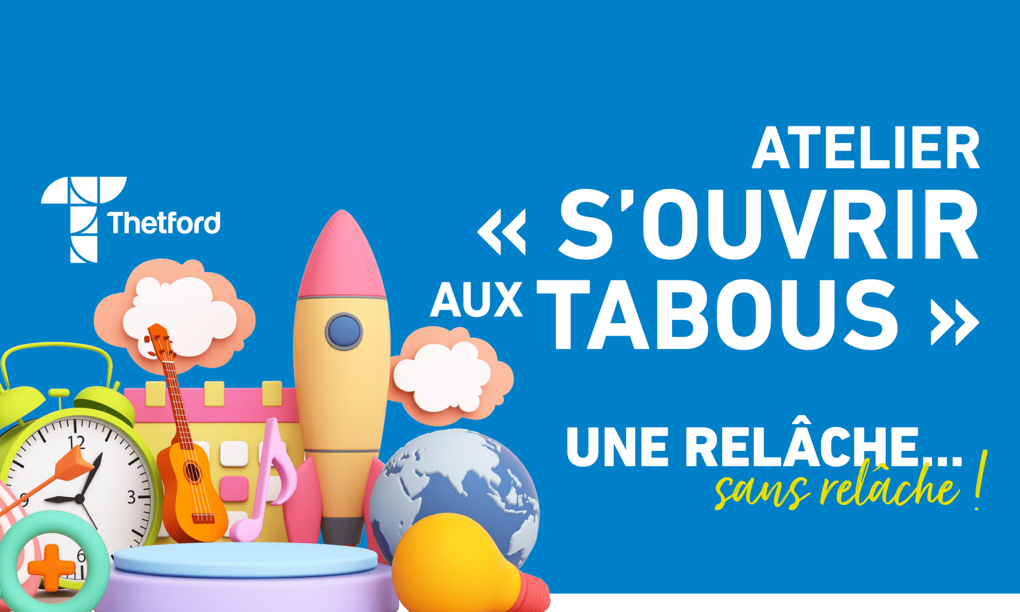 Cet atelier participatif, basés sur les romans de la collection Tabou est animé par Jessica Di Salvio autrice de 3 romans de la collection. Elle permet de discuter de l’importance de l’ouverture d’esprit sur des sujets tabous, les sensibiliser et leur offrir des ressources.
