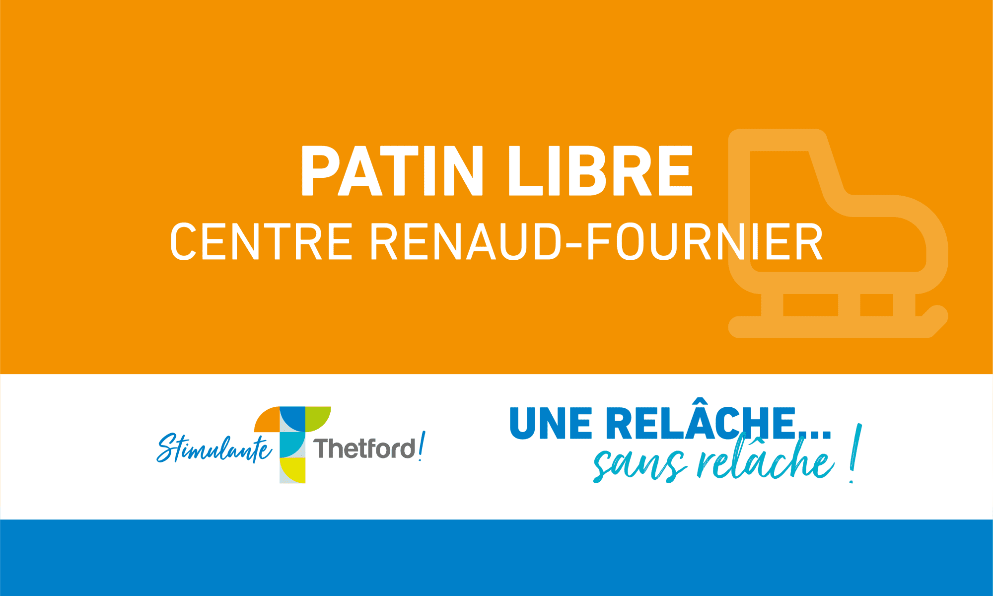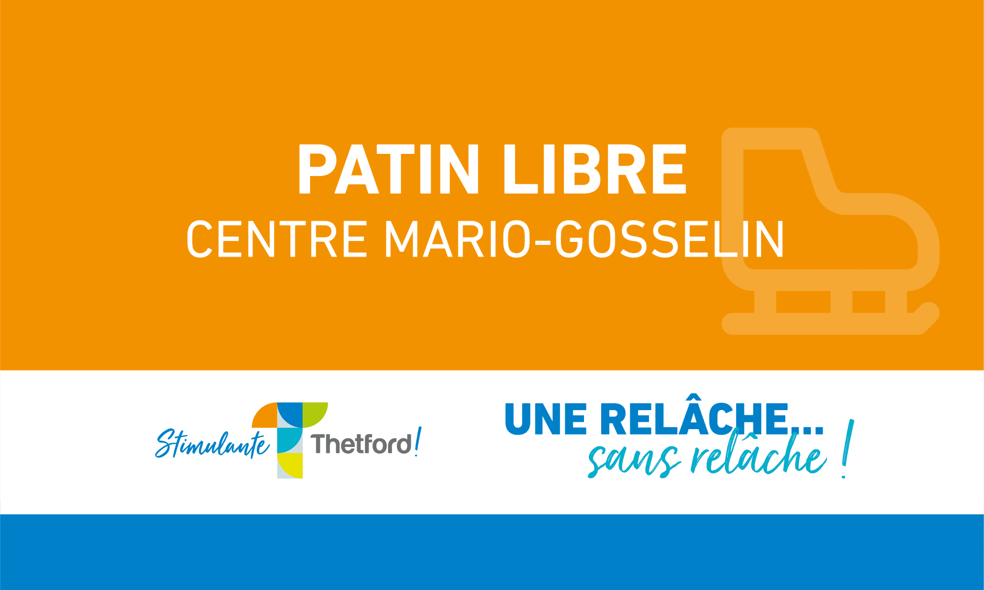 Plages horaires offertes pour le patinage. Un support sera offert pour les jeunes apprentis patineurs. Voir grille de programmation.
