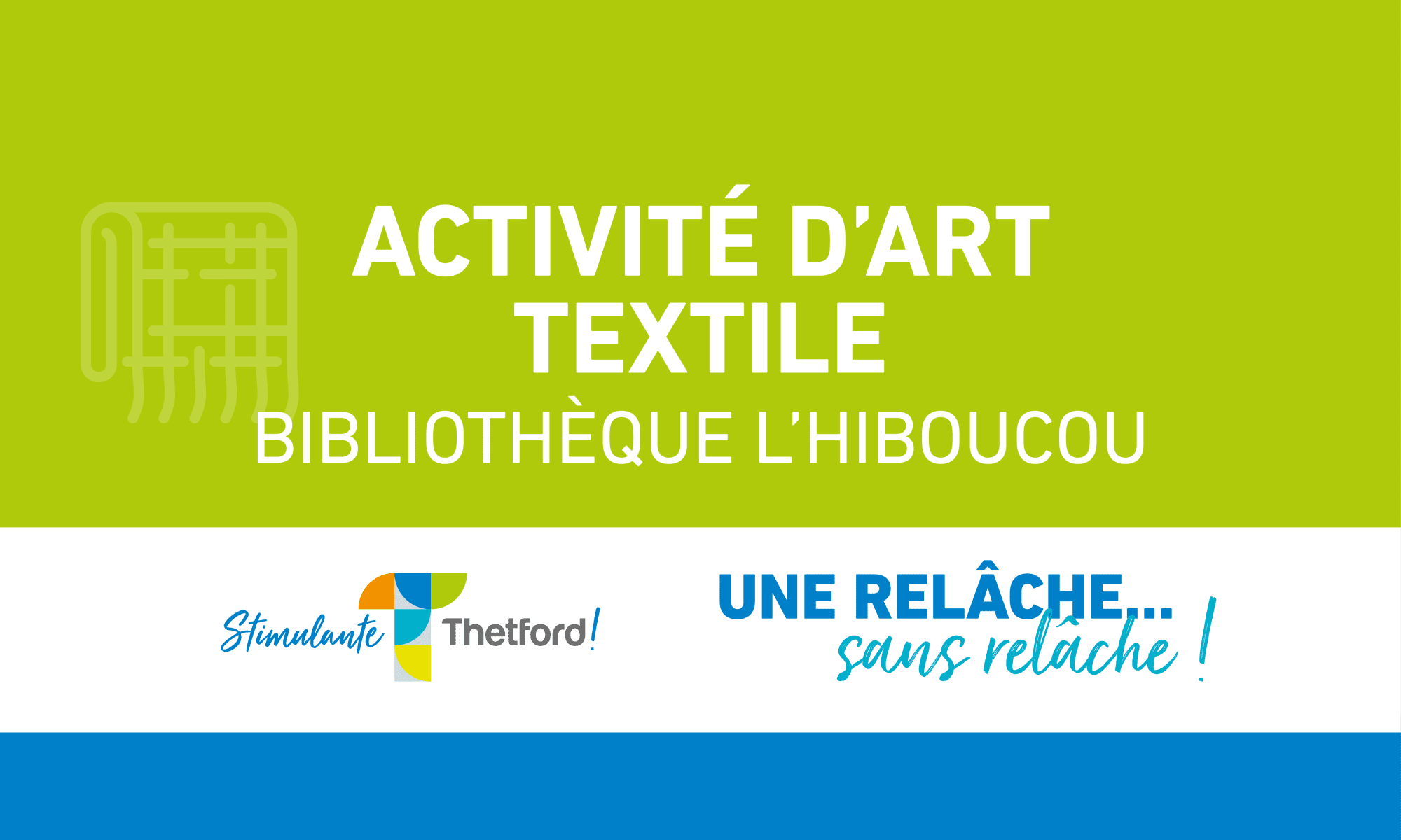 Venez découvrir la technique du tissage et fabrique un signet. En collaboration avec le Cercle des fermières de Robertsonville. Activité en continu.
