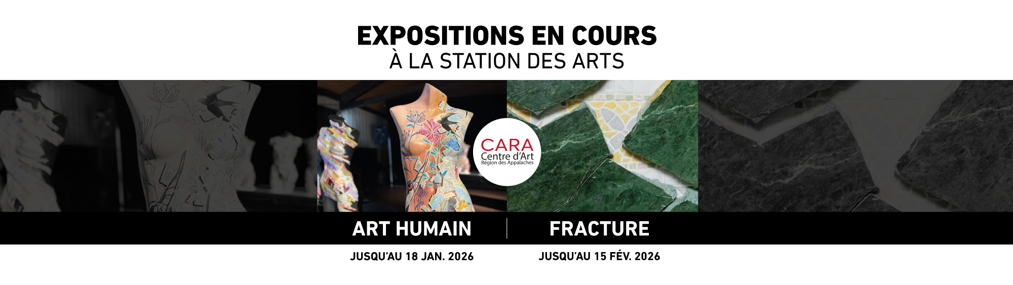La Station des arts de Thetford Mines est fière d’accueillir deux nouvelles expositions présentées par des artistes du Centre d’art de la région des Appalaches (CARA), soit Fracture et Art humain. Ces projets collectifs témoignent de la créativité des artistes d’ici et offrent au public une expérience culturelle enrichissante au cœur de notre communauté.