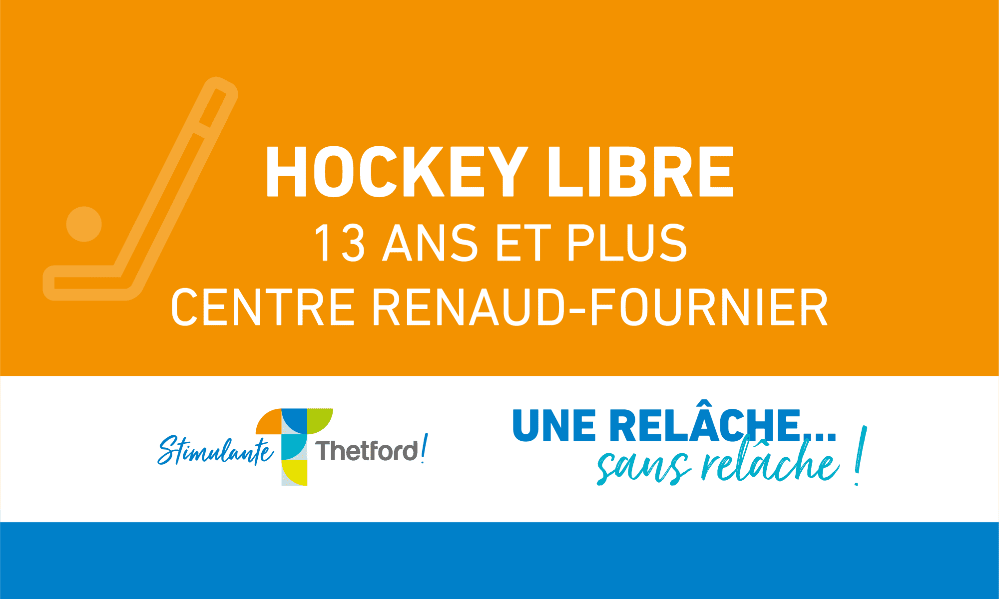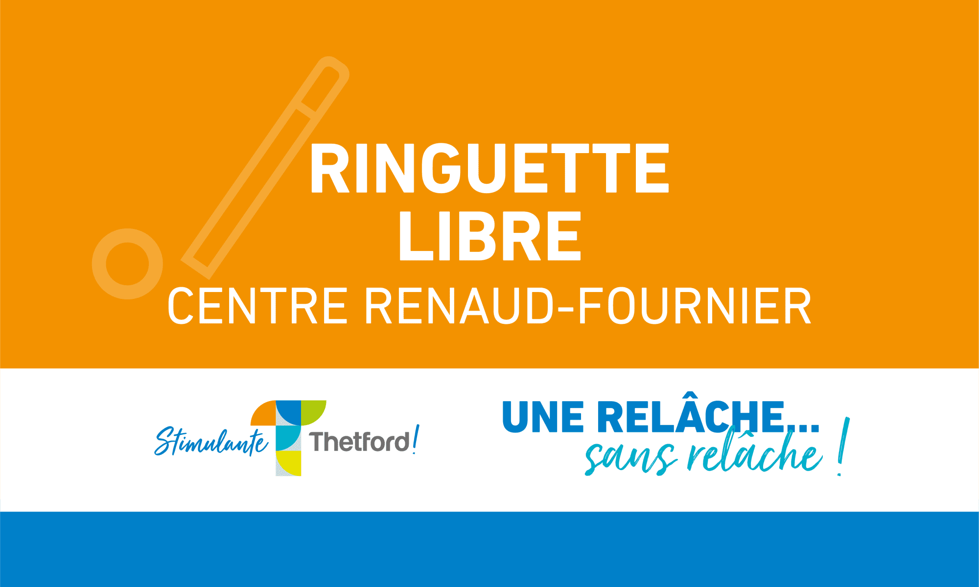 Plages horaires offertes à tous pour la pratique récréative de la ringuette. L’occasion parfaite pour découvrir ce sport. L’Association de ringuette de Thetford offrira le prêt des bâtons et des anneaux en quantité limitée. Si vous avez votre bâton, vous êtes invités à l’apporter. Voir grille de programmation.
